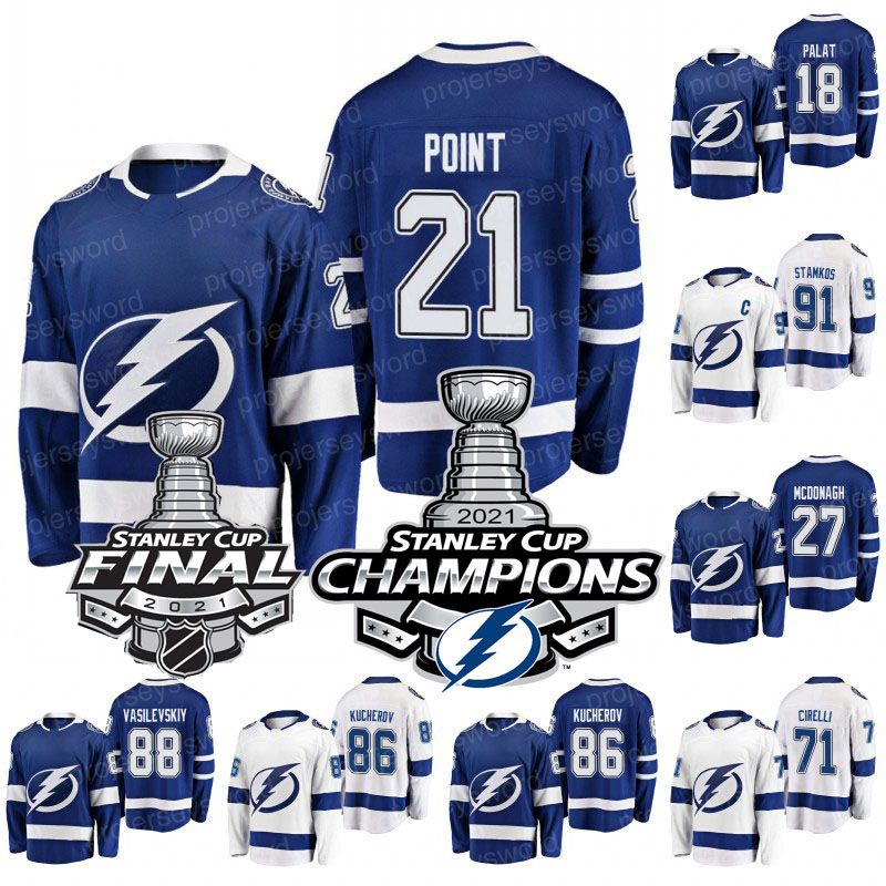 This tampa bay lightning yanni gourde 2021 stanley cup final blue jersey is designed for the nhl fans who want to represent their team and let everyone know where their allegiances lie.
