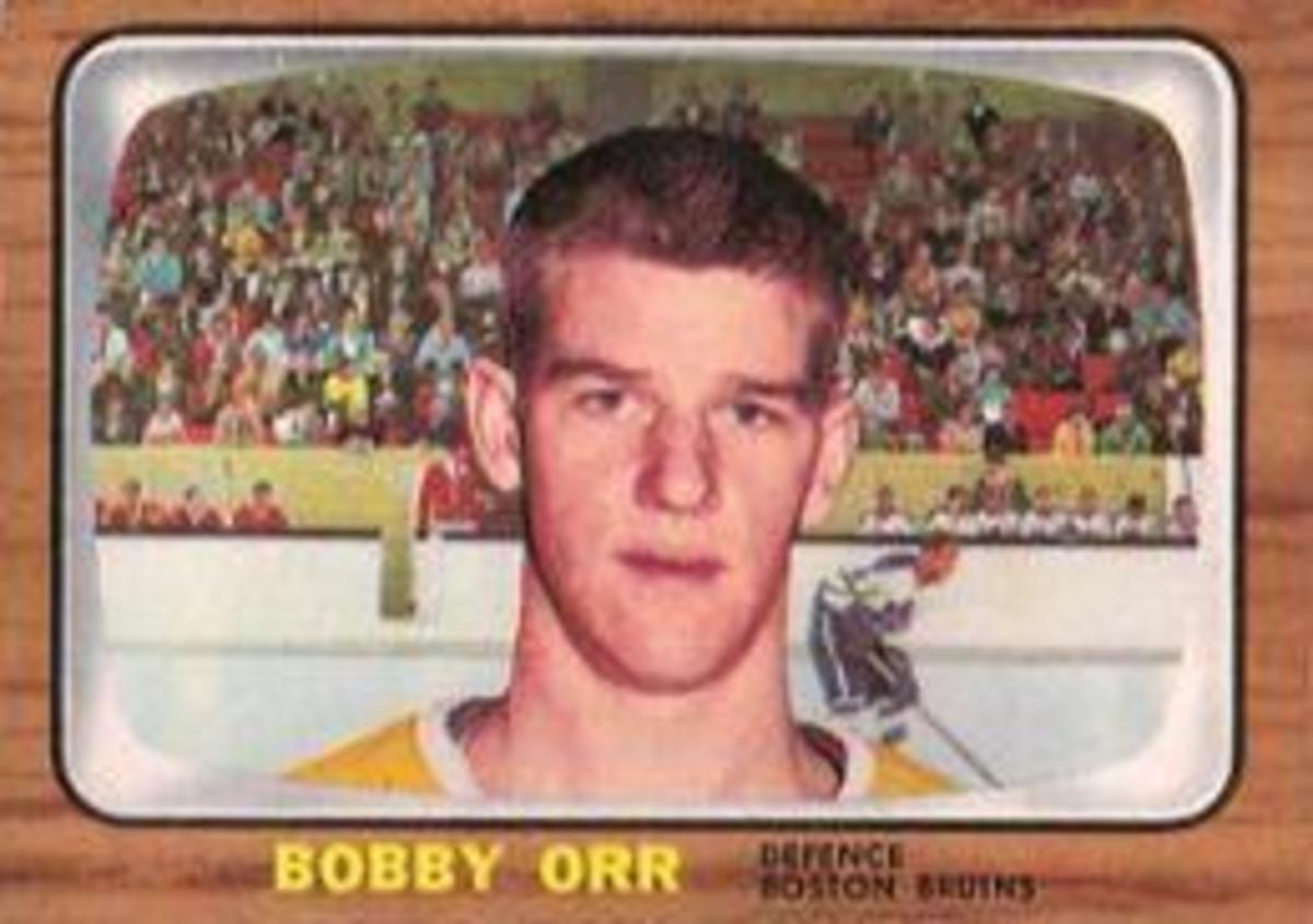 With blazing speed and tenacity, bobby orr always seemed to be around the . This is the only recognized rookie card of hockey's most legendary defenseman. Shop comc's extensive selection of bobby orr hockey cards. 1966 '66 topps hockey #35 bobby orr bruins rookie card rc graded psa 1. 1966 '66 topps hockey #35 bobby orr bruins rookie card rc graded bvg 2. A winnipeg man is aiming to shatter the record for world's most expensive hockey card. Frank hunt posted his bobby orr rookie card online . (the extremely scarce usa test version . Rookie cards, autographs and more. Lelands, a sports memorabilia and card auction house established in 1985 is set to sell a 1966 bobby orr usa test #35 psa mint 9 pop 1/1 bobby orr rookie . A 1960 topps bobby orr rookie card. 2002 sp authentic sign of the times bobby orr/ ray bourque dual auto .